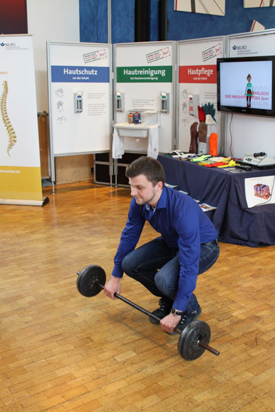 Der Rückenparcours ist kein Ausstellungsstand, der individuell und ohne Anleitung besucht werden kann. Die Betreuung der Besucher vor Ort erfolgt durch qualifiziertes Fachpersonal, das durch die BG RCI bereitgestellt wird.