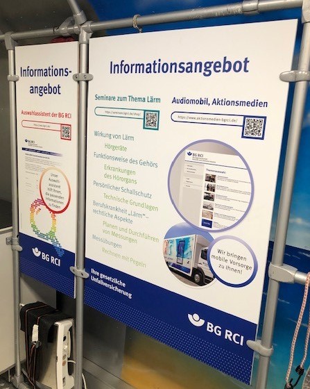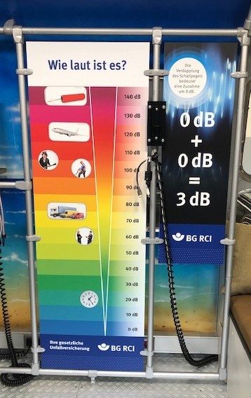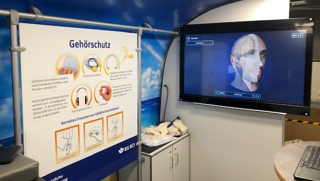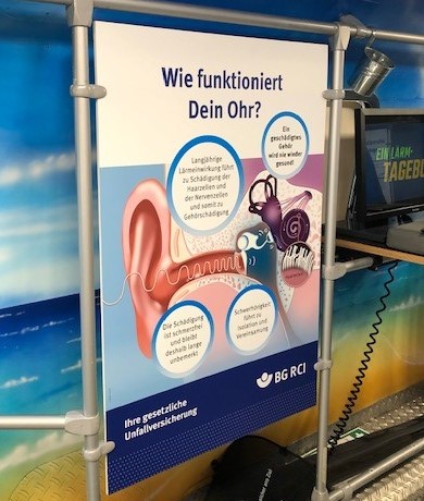 Lärm gehört zu den Belastungen, von denen sich die Menschen in Deutschland am meisten betroffen fühlen. Wie wirken privater und beruflicher Lärm auf die Gesundheit, und wie kann die Belastung verringert werden? Hier kommt das Ideenmobil Lärm/Gehörschutz ins Spiel: Das Ideenmobil zeigt Ihnen vor Ort, welche negativen Auswirkungen Lärm und Hörschäden auf Ihren Alltag haben können. In Videos und Präsentationen werden an verschiedenen Stationen Grundkenntnisse zu den Themen Schall/Lärm, Gehör und der Entstehung der Lärm-Schwerhörigkeit vermittelt. Letztere wird zusätzlich in Klangbeispielen am eigenen Ohr spürbar gemacht. Der Moderator erklärt Ihnen außerdem anschaulich, welche Gehörschutz-Arten vorhanden sind und übt mit Ihnen das richtige Einsetzen der am häufigsten verwendeten Gehörschutzstöpsel. Bitte beachten Sie folgende wichtige Hinweise: Pro Führung dürfen sich maximal 5 interessierte Personen im Fahrzeug aufhalten. Pro Stunde ist eine Gruppe vorzusehen! Bitte beachten Sie, dass ein Einsatz in den Wintermonaten -aufgrund der Witterung- nur unter Vorbehalt stattfinden kann. |