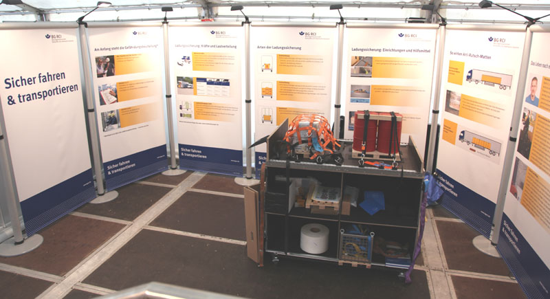 Mit dem Begriff Ladungssicherung bezeichnet man das Sichern von Ladegut u.a. im Straßenverkehr gegen die beim Transport auftretenden physikalischen Kräfte. Ungenügend oder falsch angebrachte sowie fehlende Ladungssicherung führt oft zu einer Ladungsverschiebung und kann infolge zu einer gefährlichen Situation für Mensch und Umwelt werden. Dem Besucher werden in diesem Modul die grundlegenden Anforderungen an die Ladungssicherung vermittelt. Das Modul thematisiert die fünf Bereiche: